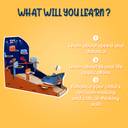 This STEM educational toy teaches children about distance and speed. Kids explore these concepts through interactive LMS gameplay, quizzes, and fun experiments. This DIY kit includes premium MDF sheets to build the basketball arena, removable baskets, a catapult ball launcher, a scorekeeper, a reusable scorecard, wax, rubber bands, a certificate, and an instruction manual.