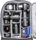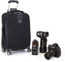 Lock & cable to secure lockable zippers and tether the bag, 3-ways to roll: upright at your side, back wheel tilt, or side wheel tilt, Seam-sealed rain cover included, Bottom handle for easy over head lifting, Tripod mount and water bottle pocket on side, 2-position locking handle extends to 39–42” for better ergonomics when pushing, Interior zippered pockets for batteries, CF cards, filters and accessories, Top zippered pocket for wallet or cell phone, Rapid access side pocket for travel essentials, Reinforced back panel for increased durability, User replaceable wheels, Seam sealed rain cover included