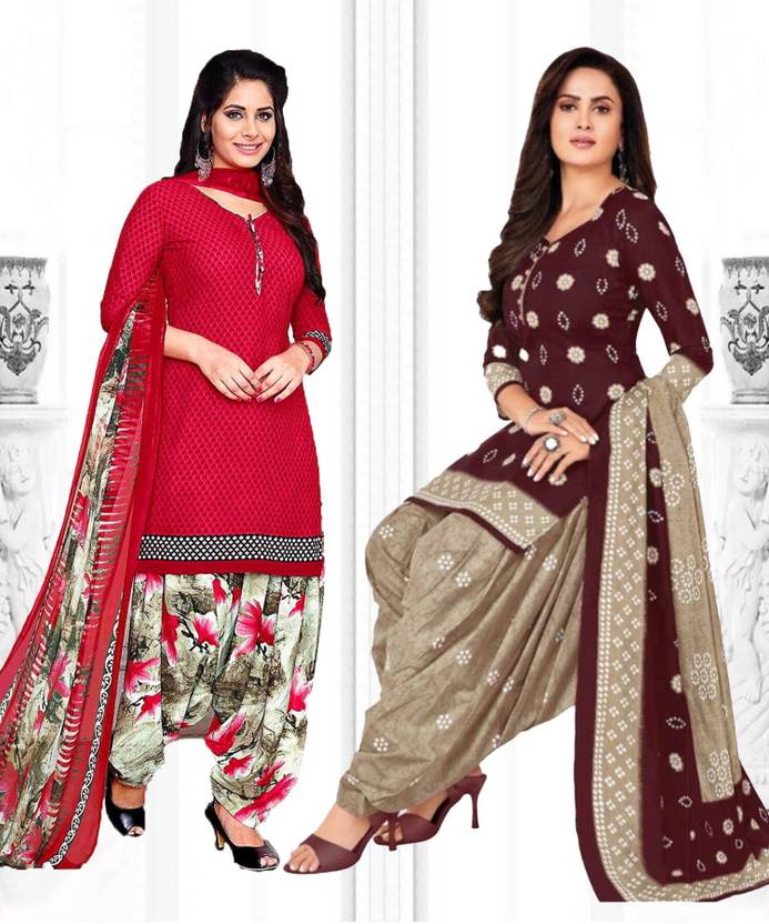 Crepe Printed Unstiched Dress Material. Add style to your Daily Wear Collection with this Printed Dress material Salwar suit. Two Unstitched Salwar, Two Unstitched Top, Two Dupatta.Top & Bottom Fabric : American Crepe, Dupatta Fabric : Martina You can use it for daily wear purpose it will give you immense comfort and fresh styling look.