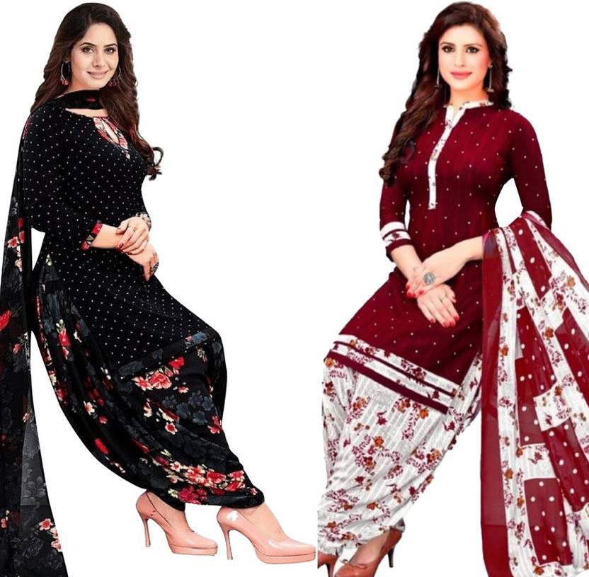 Crepe Printed Unstiched Dress Material. Add style to your Daily Wear Collection with this Printed Dress material Salwar suit. Two Unstitched Salwar, Two Unstitched Top, Two Dupatta.Top & Bottom Fabric : American Crepe, Dupatta Fabric : Martina You can use it for daily wear purpose it will give you immense comfort and fresh styling look.