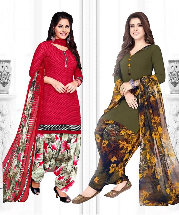 Womens Crepe Printed Unstiched Dress Material. Add style to your Daily Wear Collection with this Printed Dress material Salwar suit. 2 Unstitched Salwar, 2 Unstitched Top, 2 Dupatta.Top & Bottom Fabric : American Crepe, Dupatta Fabric : Martina You can use it for daily wear purpose it will give you immense comfort and fresh styling look.