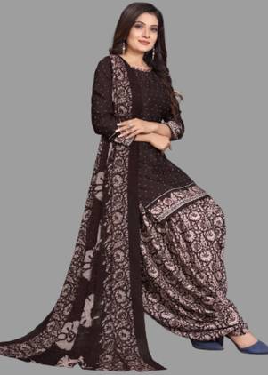 Flaunt a new ethnic look with this dress material. This Italian Leon Crepe suit is beautifully adorned with Print work comes along with solid Italian Leon Crepe bottom and martina chiffon dupatta makes it appear more adorning. Women can buy this suit to wear for their upcoming festivals, homely functions, parties, kitties, weekend get together. Get this unstitched suit stitched according to your fit and comfort. Team it with stylish accessories to make your looks more beautiful. Note:- The actual product may differ slightly in color and design from the one illustrated in the images when compared with computer or mobile screen.