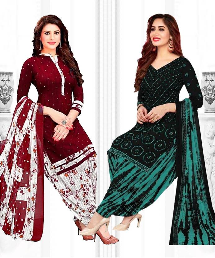Crepe Printed Unstiched Dress Material. Add style to your Daily Wear Collection with this Printed Dress material Salwar suit. Two Unstitched Salwar, Two Unstitched Top, Two Dupatta.Top & Bottom Fabric : American Crepe, Dupatta Fabric : Martina You can use it for daily wear purpose it will give you immense comfort and fresh styling look.