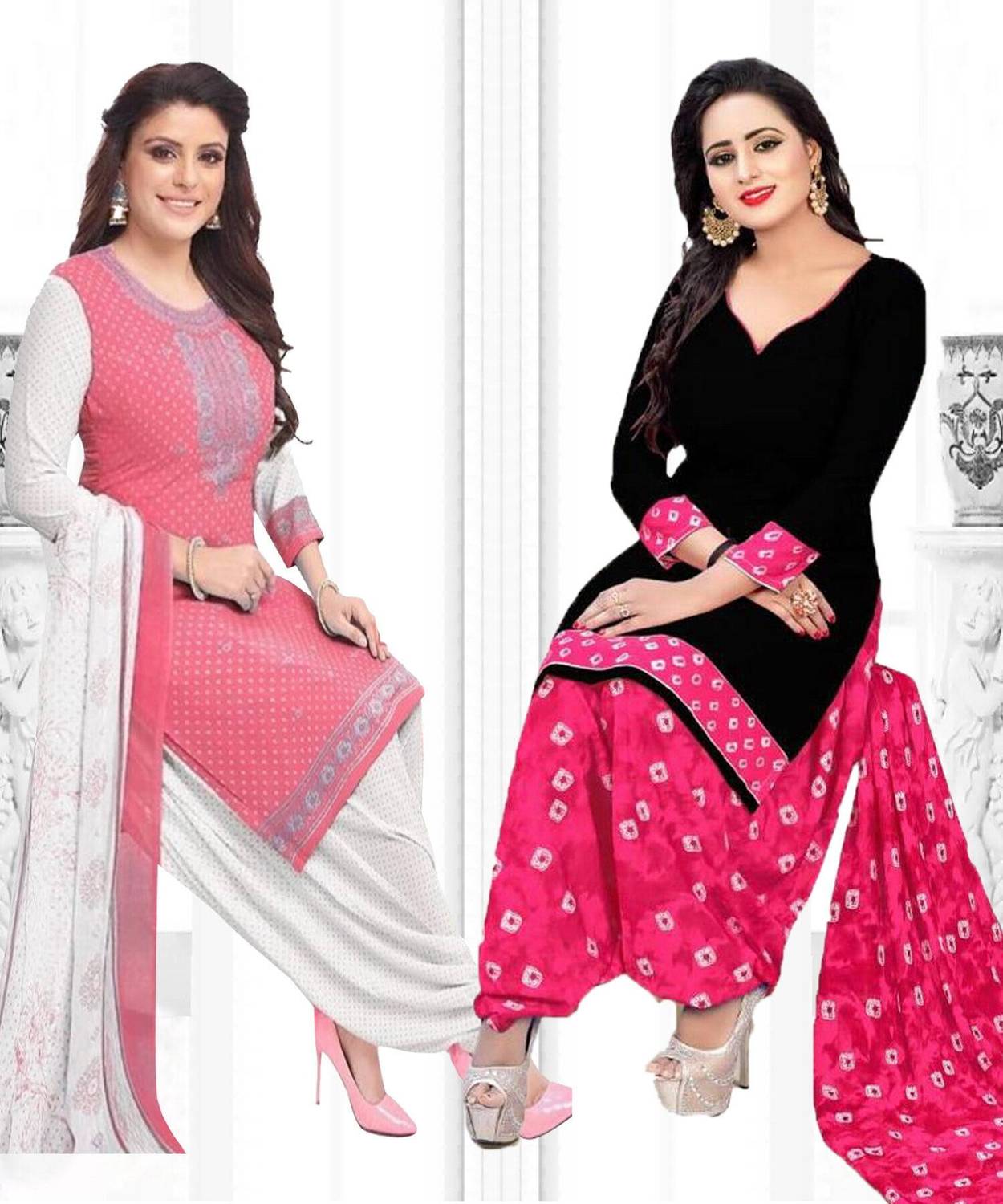 Womens Crepe Printed Unstiched Dress Material. Add style to your Daily Wear Collection with this Printed Dress material Salwar suit. 2 Unstitched Salwar, 2 Unstitched Top, 2 Dupatta.Top & Bottom Fabric : American Crepe, Dupatta Fabric : Martina You can use it for daily wear purpose it will give you immense comfort and fresh styling look.