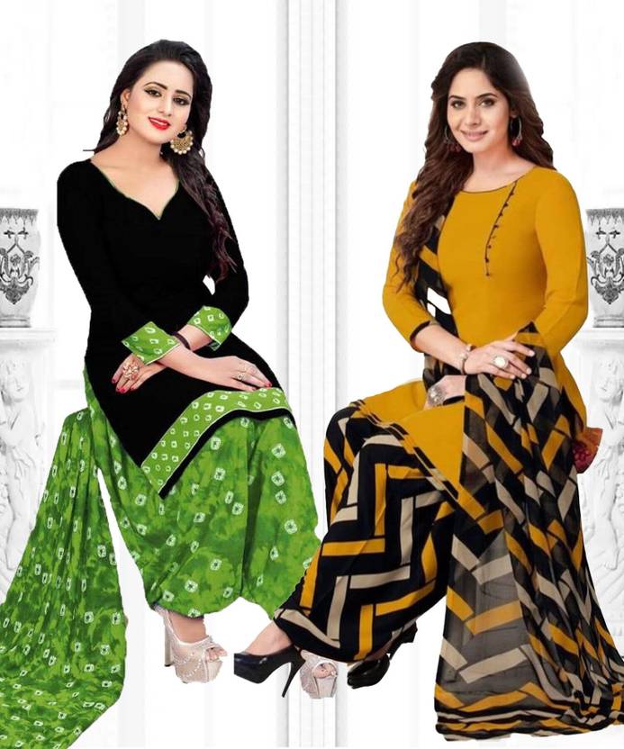 Unstitched Crepe Salwar Suit Material Printed