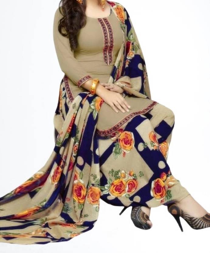 Flaunt a new ethnic look with this dress material. This Italian Leon Crepe suit is beautifully adorned with Print work comes along with solid Italian Leon Crepe bottom and martina chiffon dupatta makes it appear more adorning. Women can buy this suit to wear for their upcoming festivals, homely functions, parties, kitties, weekend get together. Get this unstitched suit stitched according to your fit and comfort. Team it with stylish accessories to make your looks more beautiful. Note:- The actual product may differ slightly in color and design from the one illustrated in the images when compared with computer or mobile screen.