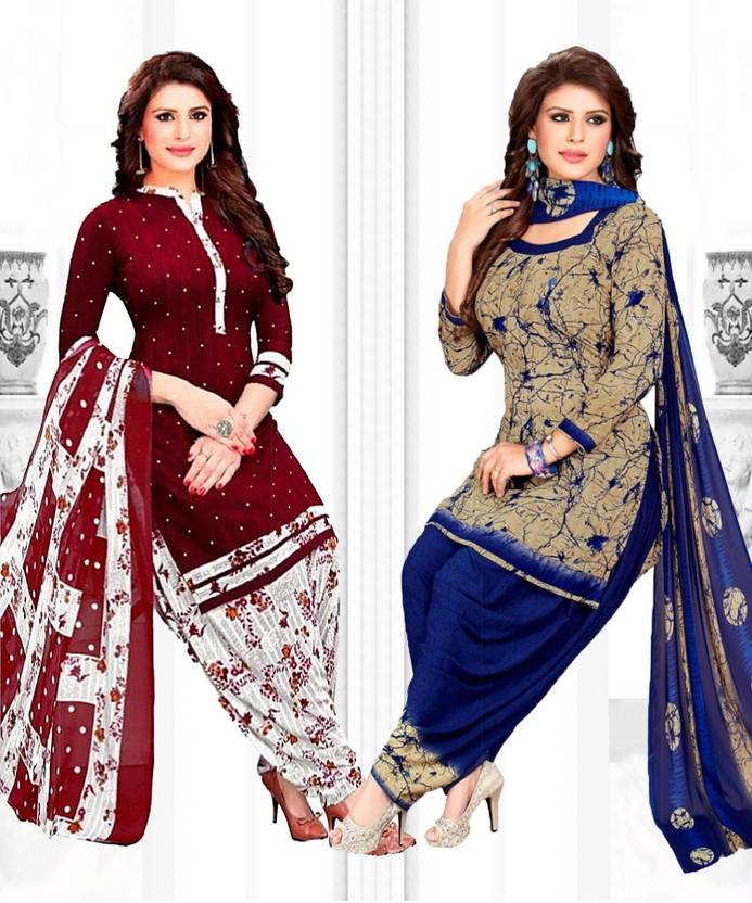 Crepe Printed Unstiched Dress Material. Add style to your Daily Wear Collection with this Printed Dress material Salwar suit. Two Unstitched Salwar, Two Unstitched Top, Two Dupatta.Top & Bottom Fabric : American Crepe, Dupatta Fabric : Martina You can use it for daily wear purpose it will give you immense comfort and fresh styling look.