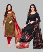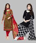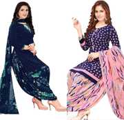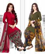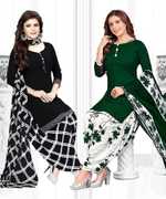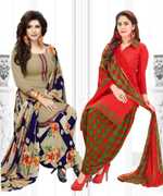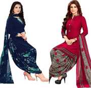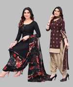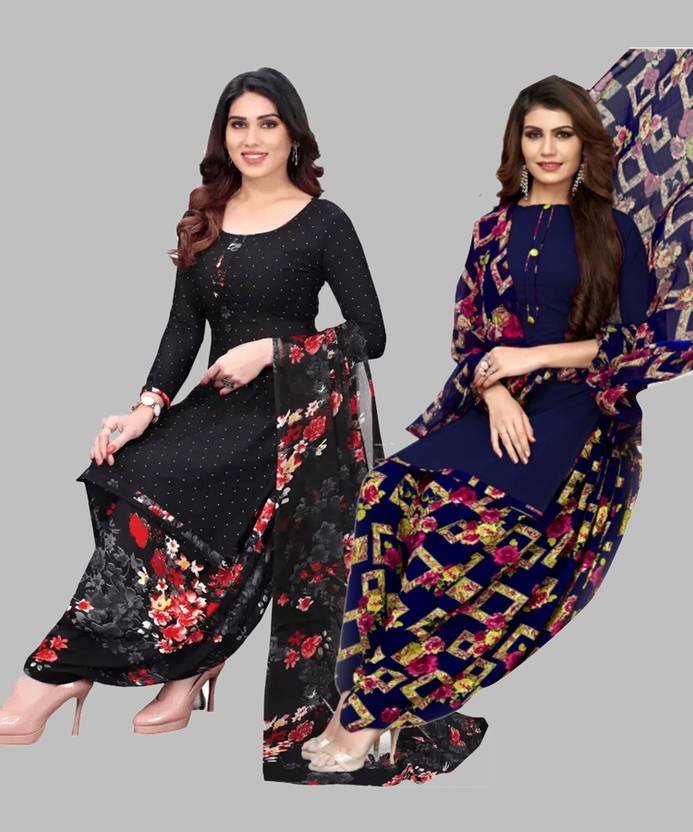 Womens Crepe Printed Unstiched Dress Material. Add style to your Daily Wear Collection with this Printed Dress material Salwar suit. 2 Unstitched Salwar, 2 Unstitched Top, 2 Dupatta.Top & Bottom Fabric : American Crepe, Dupatta Fabric : Martina You can use it for daily wear purpose it will give you immense comfort and fresh styling look.