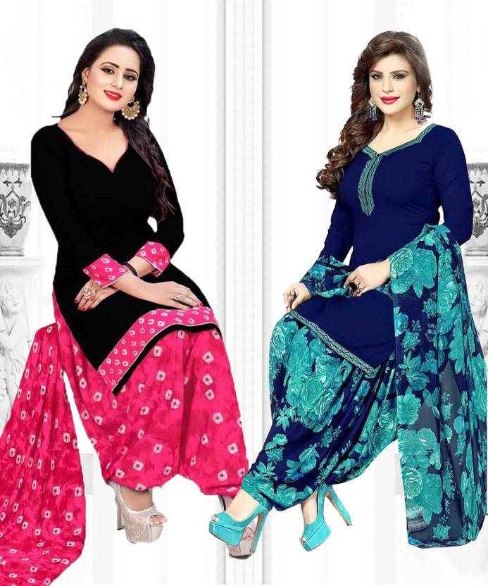 Womens Crepe Printed Unstiched Dress Material. Add style to your Daily Wear Collection with this Printed Dress material Salwar suit. 2 Unstitched Salwar, 2 Unstitched Top, 2 Dupatta.Top & Bottom Fabric : American Crepe, Dupatta Fabric : Martina You can use it for daily wear purpose it will give you immense comfort and fresh styling look.