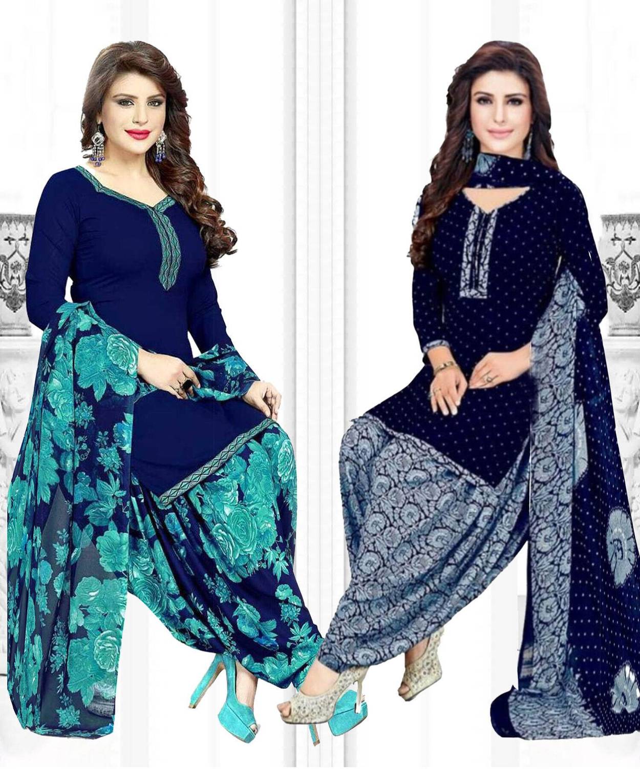 Womens Crepe Printed Unstiched Dress Material. Add style to your Daily Wear Collection with this Printed Dress material Salwar suit. 2 Unstitched Salwar, 2 Unstitched Top, 2 Dupatta.Top & Bottom Fabric : American Crepe, Dupatta Fabric : Martina You can use it for daily wear purpose it will give you immense comfort and fresh styling look.