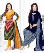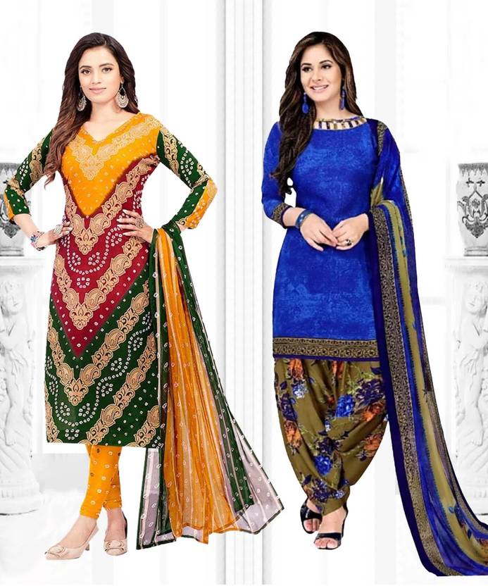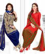 Womens Crepe Printed Unstiched Dress Material. Add style to your Daily Wear Collection with this Printed Dress material Salwar suit. 2 Unstitched Salwar, 2 Unstitched Top, 2 Dupatta.Top & Bottom Fabric : American Crepe, Dupatta Fabric : Martina You can use it for daily wear purpose it will give you immense comfort and fresh styling look.