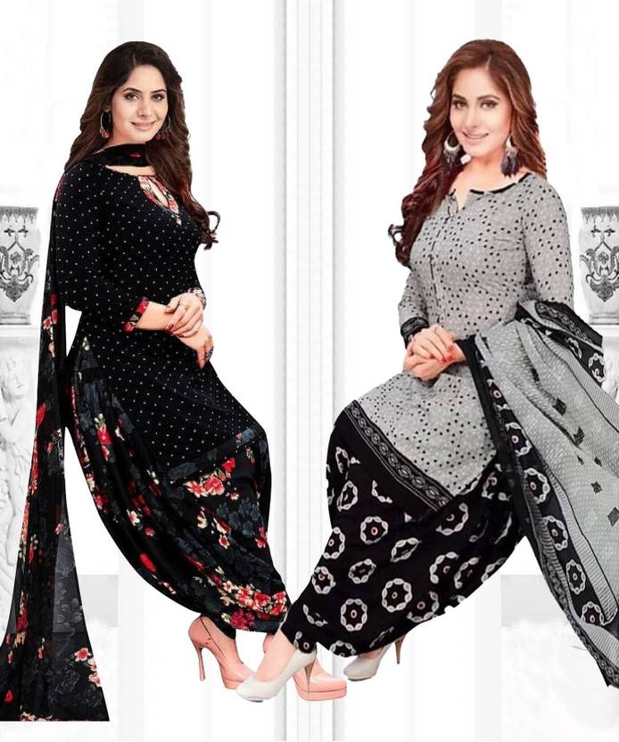 Crepe Printed Unstiched Dress Material. Add style to your Daily Wear Collection with this Printed Dress material Salwar suit. Two Unstitched Salwar, Two Unstitched Top, Two Dupatta.Top & Bottom Fabric : American Crepe, Dupatta Fabric : Martina You can use it for daily wear purpose it will give you immense comfort and fresh styling look.