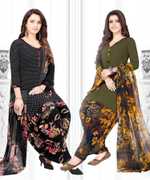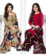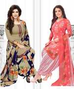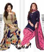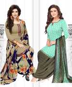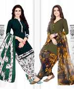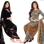 Womens Crepe Printed Unstiched Dress Material. Add style to your Daily Wear Collection with this Printed Dress material Salwar suit. 2 Unstitched Salwar, 2 Unstitched Top, 2 Dupatta.Top & Bottom Fabric : American Crepe, Dupatta Fabric : Martina You can use it for daily wear purpose it will give you immense comfort and fresh styling look.