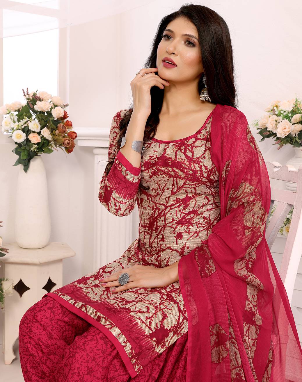 THIRA Crepe Solid Salwar Suit Material