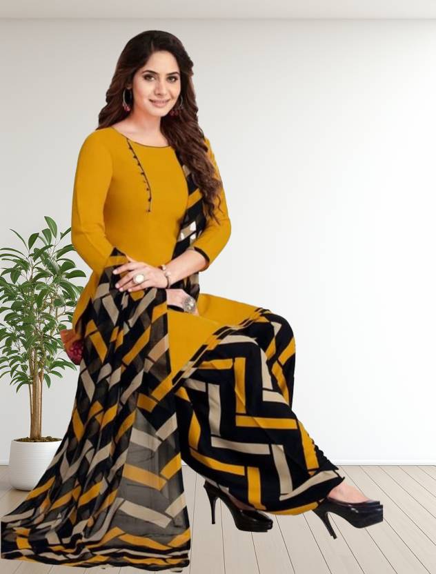 Flaunt a new ethnic look with this dress material. This Italian Leon Crepe suit is beautifully adorned with Print work comes along with solid Italian Leon Crepe bottom and martina chiffon dupatta makes it appear more adorning. Women can buy this suit to wear for their upcoming festivals, homely functions, parties, kitties, weekend get together. Get this unstitched suit stitched according to your fit and comfort. Team it with stylish accessories to make your looks more beautiful. Note:- The actual product may differ slightly in color and design from the one illustrated in the images when compared with computer or mobile screen.
