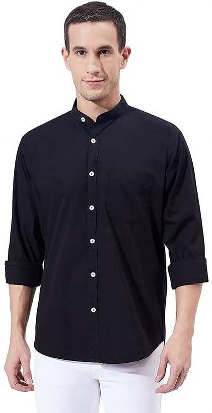 For year-round comfort and style, opt for this top-notch shirt from Roadster. A pair of sneakers and slim denim are the perfect additions to this black piece when you're going outside for a day in the park.black has a spread collar, button placket, 1 pocket, long sleeves, curved hem