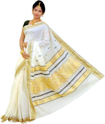 THIRUMALAI TEXTILES Solid/Plain Mundum Neriyathum Handloom Cotton Blend Saree Reviews