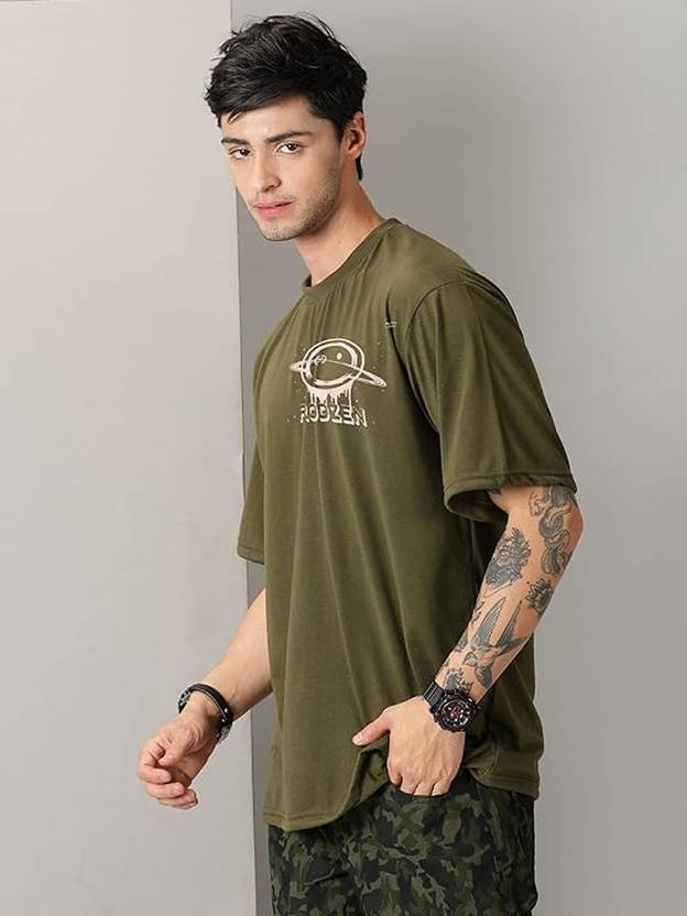 Thomas GeorgeĀ Men Printed Round Neck Cotton Blend Dark Green T-Shirt
