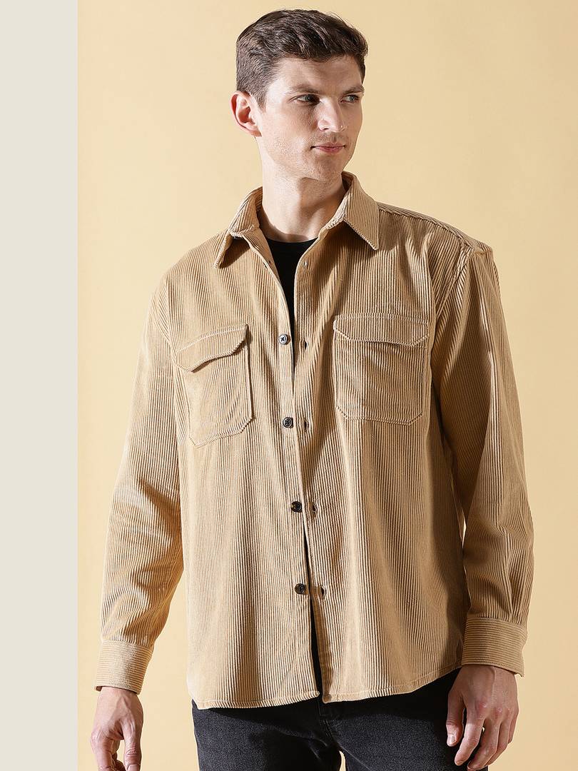 THOMAS SCOTT Men Solid Casual Beige Shirt