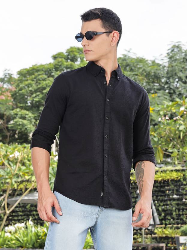 THOMAS SCOTT Men Solid Casual Black Shirt