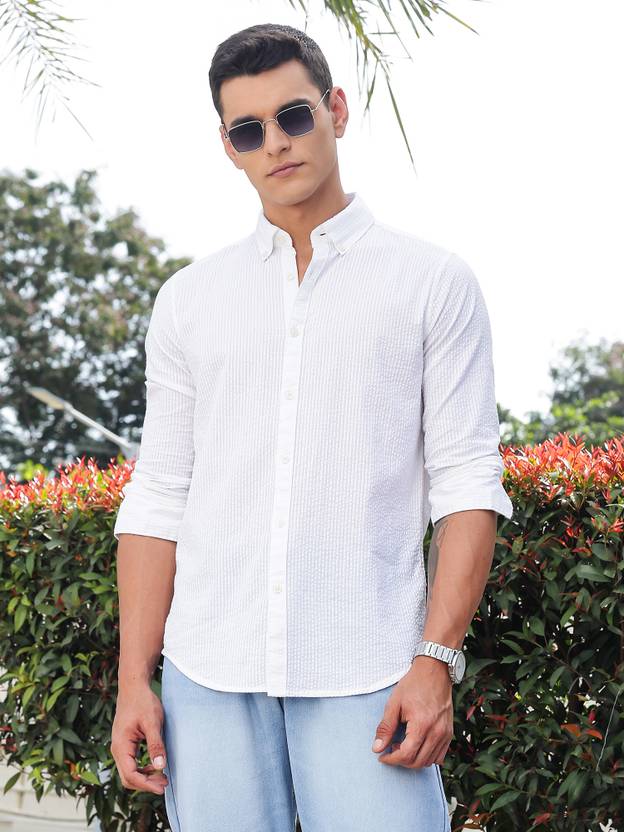 Men Slim Fit Solid Button Down Collar Casual Shirt