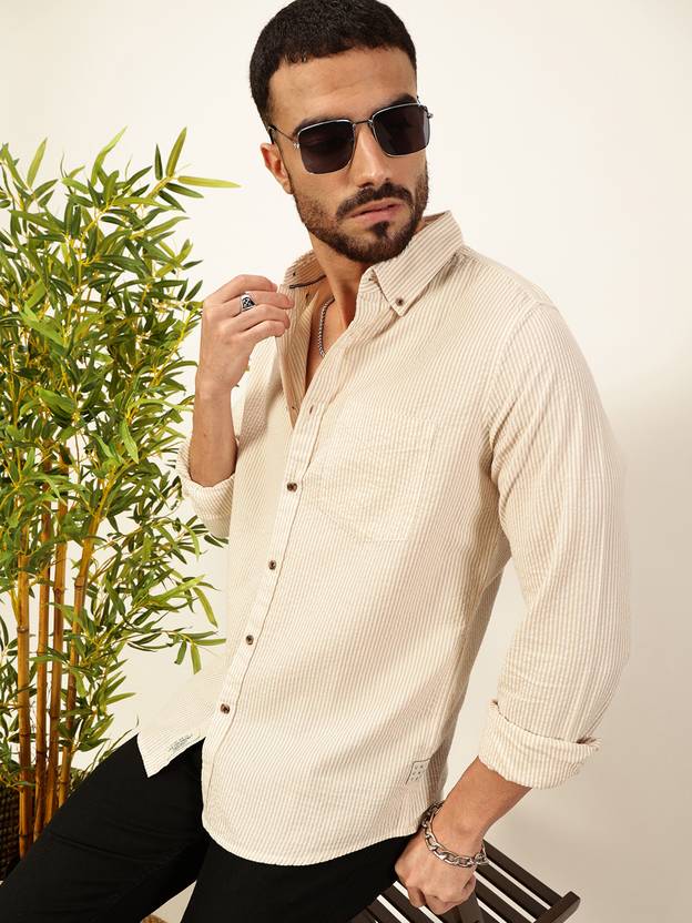 Introducing the Thomas Scott Men's 100% Cotton Button Down Collar Full Sleeves Striped Casual Shirt, a perfect blend of comfort and style. Crafted from premium, breathable cotton, this shirt ensures all-day comfort while maintaining a sharp, polished look. The classic button-down collar and full sleeves add a touch of sophistication, making it versatile enough for both casual outings and more formal occasions. The stylish stripes enhance its contemporary appeal, ensuring you stand out with effortless elegance. Elevate your wardrobe with this timeless piece from Thomas Scott.