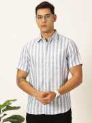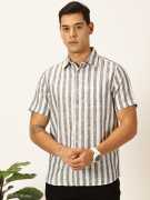 Elevate your casual wardrobe with the Thomas Scott Men's Half Sleeves Cotton Linen Striped Casual Shirt. Crafted from a premium blend of cotton and linen, this shirt offers a perfect balance of comfort and breathability, ideal for warm-weather wear. The stylish striped pattern adds a touch of sophistication, while the half sleeves provide a relaxed yet polished look. Designed with versatility in mind, this shirt effortlessly transitions from casual outings to laid-back gatherings. Its lightweight fabric and classic fit ensure you stay cool and comfortable all day long. Embrace timeless style and easy elegance with this essential piece from Thomas Scott.
