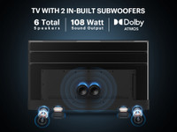 This Thomson smart TV is powered by a 6-speaker setup, which includes 2 subwoofers and 4 speakers, delivering a powerful sound output of 108 W, allowing you to have an immersive experience. Integrated with Dolby Atmos, Dolby Digital Plus, and a 180-degree sound field, you get spectacular visuals in crystal-clear quality. Enjoy a cinematic vibe with truly immersive audio, thanks to its deafening speakers.
