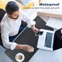 ANTI-SCRATCH & WATERPROOF : Our desk pad for office is made of heavy-duty,premium Italy pu leather,no unpleasant smell,protect your glass/wooden desktop from scratches,stains,and spills,you can move the mouse quickly in the large desk mat, excellent flexibility.This desk pad for office has waterproof surface,oil-proof,when you accidentally spill something on the desk blotter pad,our desk blotter pad can be easily wiped cleanly,protect your desktop from laptop, keyboard, mouse or others. BOTH SIDES USES & ANTI-SKID : Our large desk mat has both sides are available for you use,anti-skid, soft surface provides nice tactile feel,along with desk blotter pad matte finish enables smoother writing,surface can be used as a large mouse pad.The same material and color for all the desk blotter pad,special design to use in both side,2 in 1 desk pad for office home, just turn it over and utilize it,because of friction large desk mat stays in place and does not slide around. LAY FLAT & NOT FOLDED : Our desk blotter pad size of 33”x14”, large enough to accommodate your laptop,keyboard,mouse,sketchbook,journal or cup,etc.Because of friction the desk pad for office stays in place and doesn’t slide around,comes roll flat and not folded,the large desk mat soft surface provides nice tactile feel,with a tie,but which you can roll it up when you’re not using this desk pad for office or home.