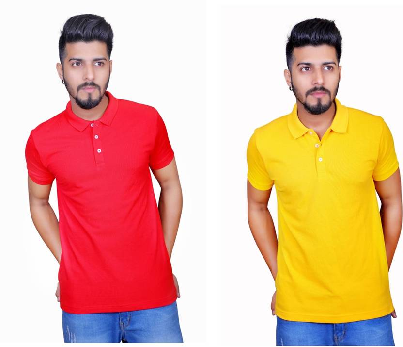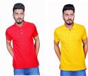 Pack of 2 Men Solid Polo Neck Polycotton Red, Yellow T-Shirt
