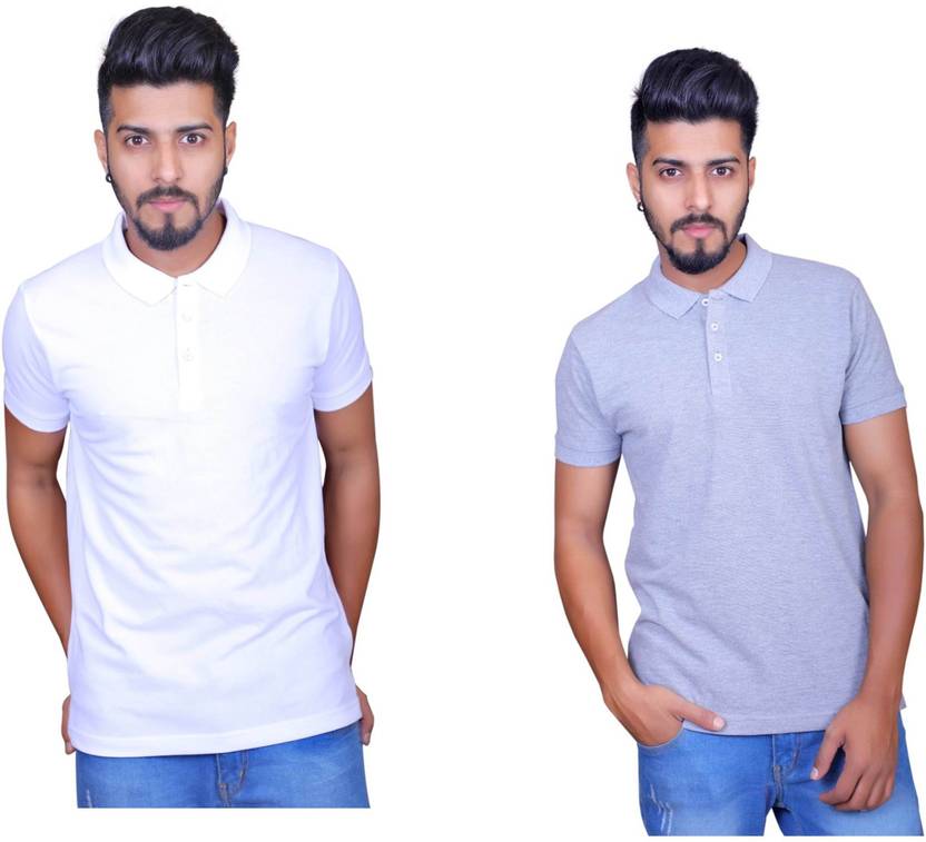 Pack of 2 Men Solid Polo Neck Polycotton White, Grey T-Shirt