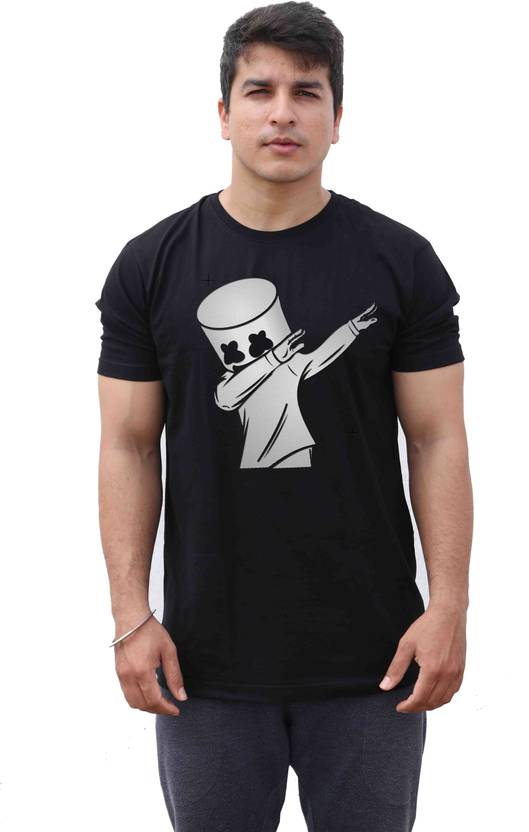 Thread Monk Men Printed Round Neck Pure Cotton White, Black T-Shirt