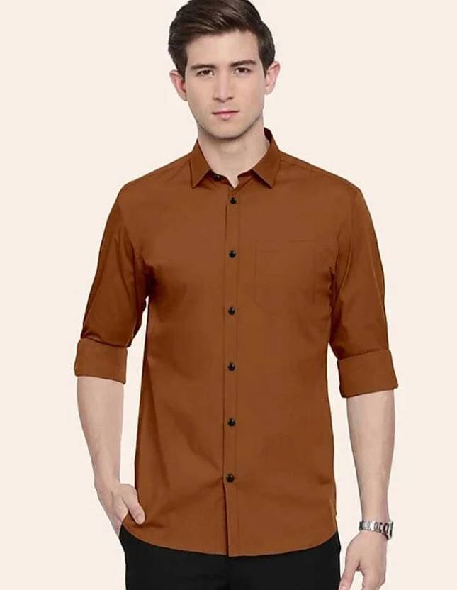 Neviq Fabs Men Solid Casual Brown Shirt