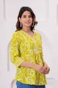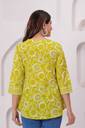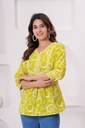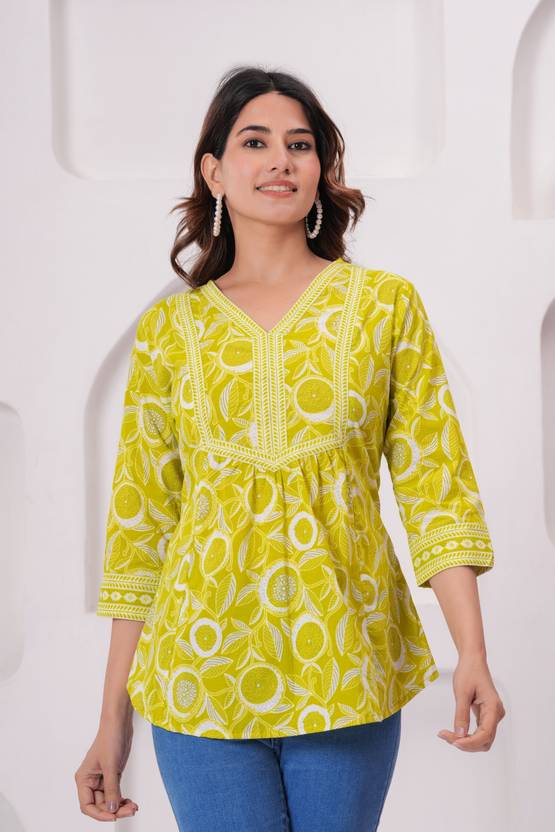 Upgrade your wardrobe with the stylish lemon color Printd Cotton Top, designed for women who value both comfort and fashion. Whether you're dressing up for a casual outing, brunch with friends, or a relaxing day at home, this top is the perfect choice. Made from 100% pure cotton, it ensures exceptional breathability, keeping you cool and comfortable all day long. The soft, lightweight fabric feels gentle on your skin, making it ideal for warm weather.