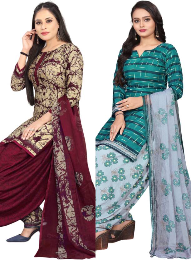Threads Womens Cotton Blend Printed Unstiched Dress Material. Add style to your Daily Wear Collection with this Printed Dress material Salwar suit. Two Unstitched Salwar, Two Unstitched Top, Two Dupatta. Top & Bottom Fabric : Cotton Blend, Dupatta Fabric : Martina Chiffon, You can use it for daily wear purpose it will give you immense comfort and fresh styling look.