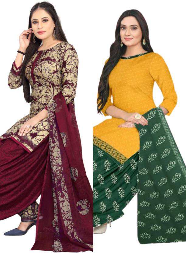 Threads Womens Cotton Blend Printed Unstiched Dress Material. Add style to your Daily Wear Collection with this Printed Dress material Salwar suit. Two Unstitched Salwar, Two Unstitched Top, Two Dupatta. Top & Bottom Fabric : Cotton Blend, Dupatta Fabric : Martina Chiffon, You can use it for daily wear purpose it will give you immense comfort and fresh styling look.