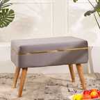 THREADVIBELIVING Solid Wood Standard Ottoman (Finish Color - Grey, Pre Assembled)