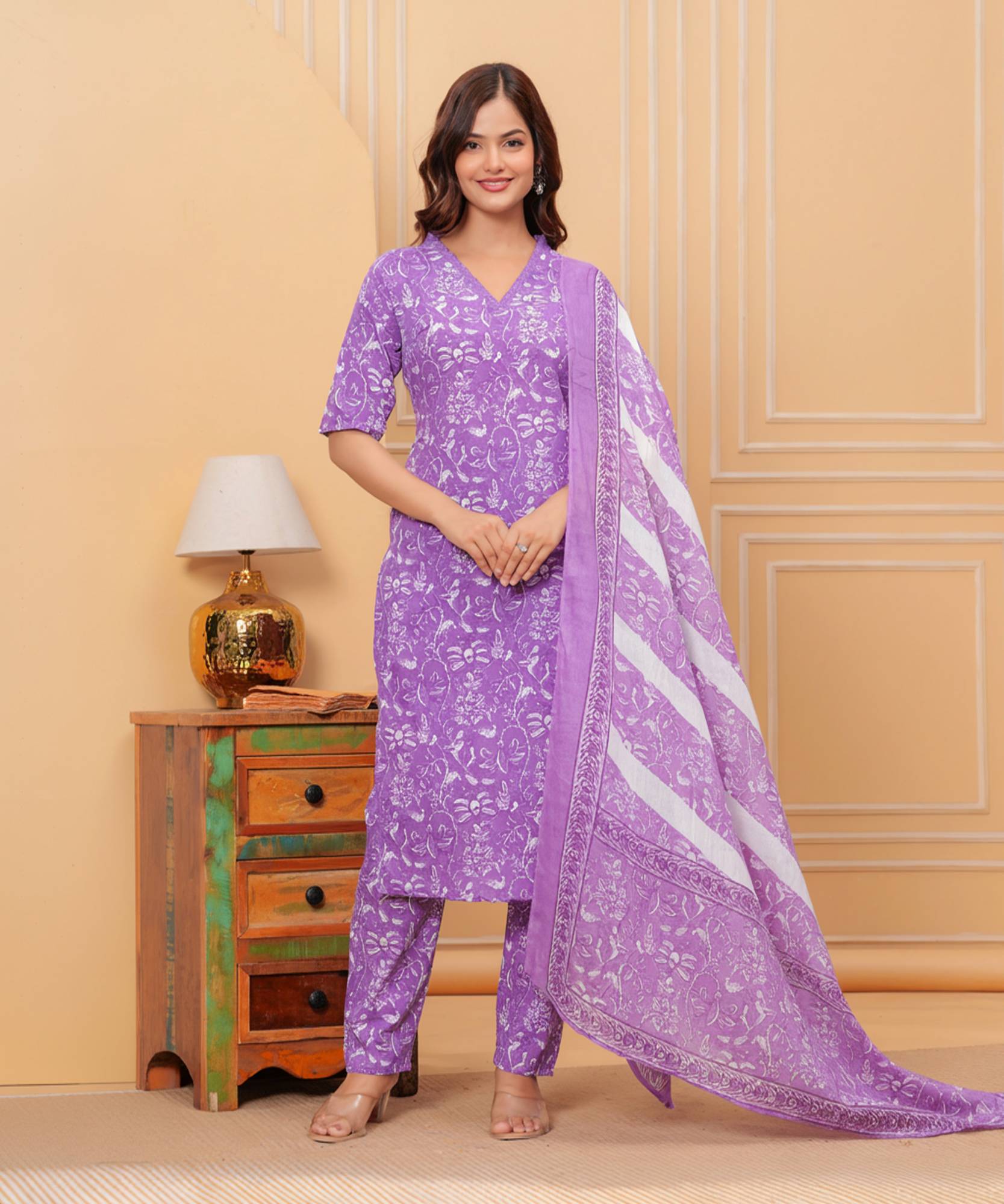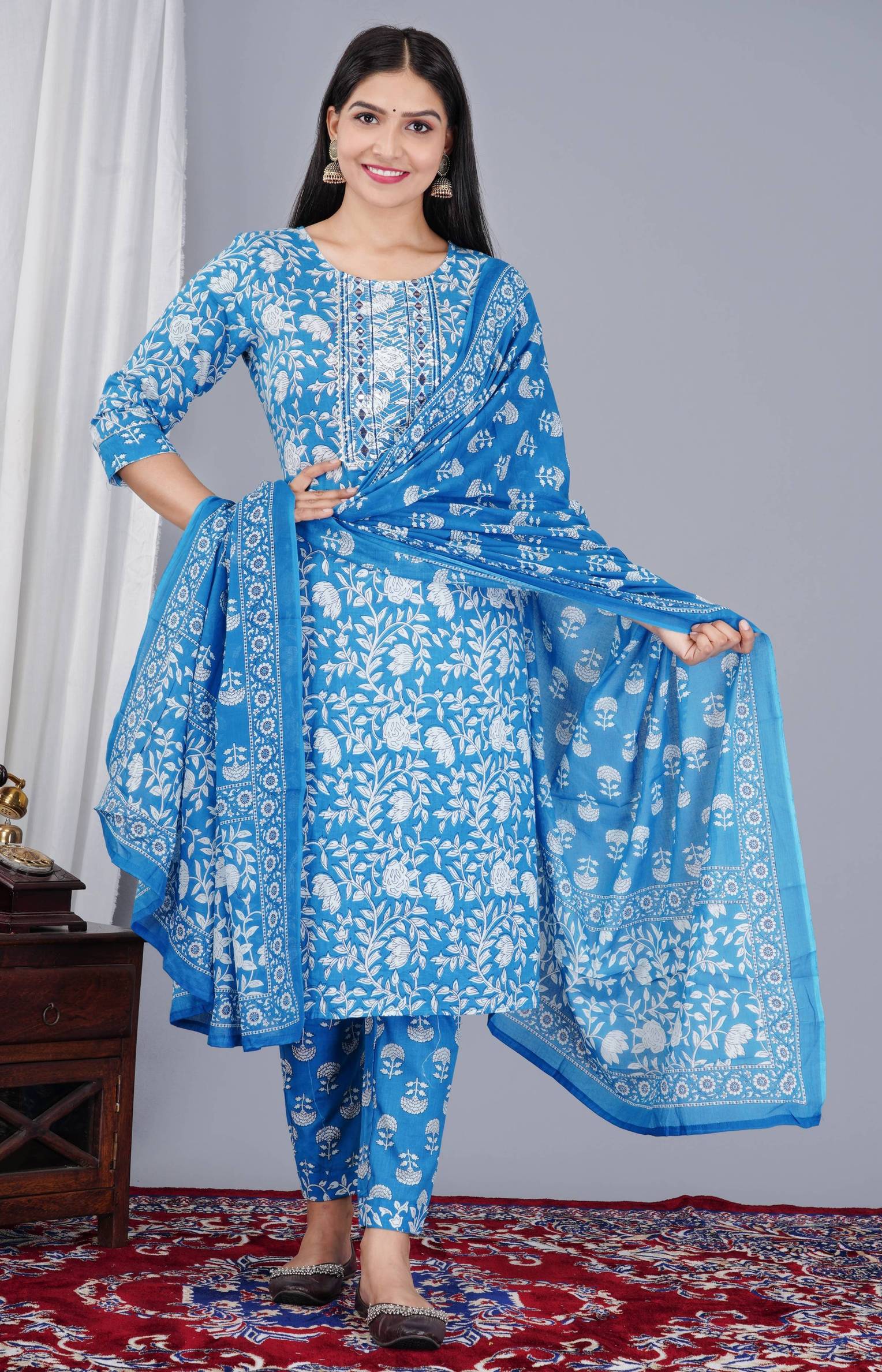 it is A Women kurta pant dupatta set. It is made with the finest Cotton fabric which is very soft and feels great to wear. This kurti and pant and dupatta set will look great. You experience something new every day. A unique product from THUMMAR HOUSE PACKET CONTAINS -1 kurti , 1 pant, 1 dupatta, FABRIC : Cotton