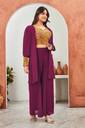 package contains : 1 shrug , 1 sharara , 1 ethnic blouse