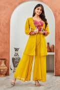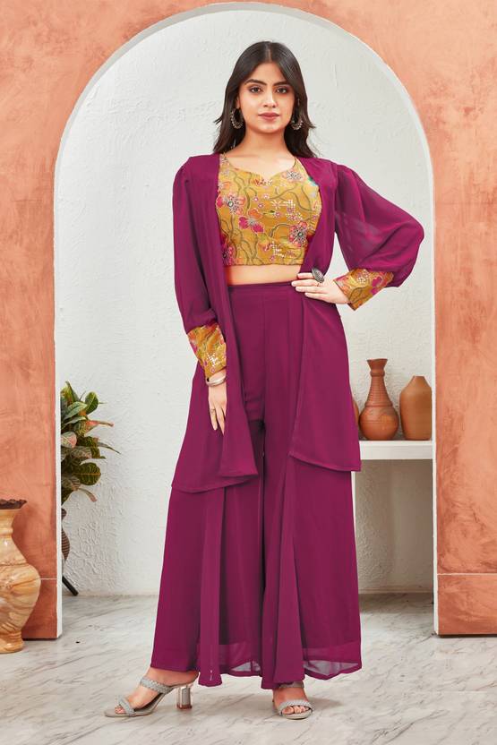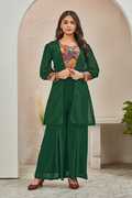 Women Georgette Kurta Sharara Ethnic Jacket Set