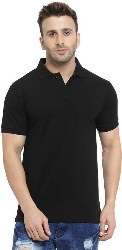 Men Solid Polo Neck Pure Cotton Black T-Shirt