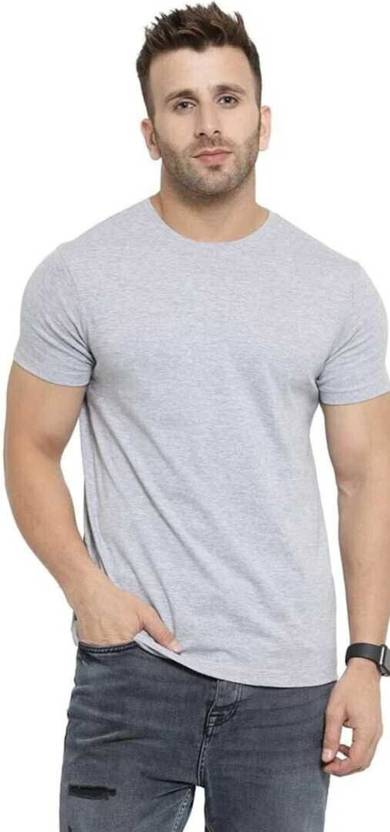 THUNDER PLANET Solid Men Round Neck Grey T-Shirt