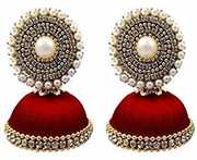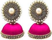 Tia Crafts Handmade Silk Thread Jhumki Earrings for Women Fabric Jhumki Earring