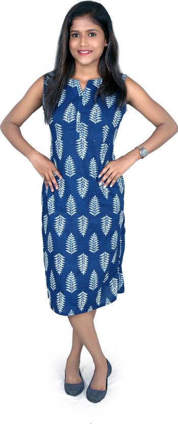 Tiarabypushpa Women A-line Dark Blue, White Knee Length Dress