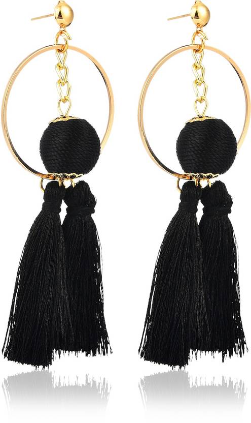 Tiaraz Korean Style Long Thread Ball Tassel Drop Dangling Earrings for women traditional