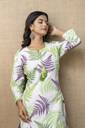 Thanks to its refined printed detailing, this women’s kurta set brings a graceful charm to your wardrobe. Moreover, the subtle motifs are thoughtfully arranged across the fabric, offering a visually pleasing design that balances style and simplicity. Each print is well-aligned, complementing the overall structure of this kurta set.