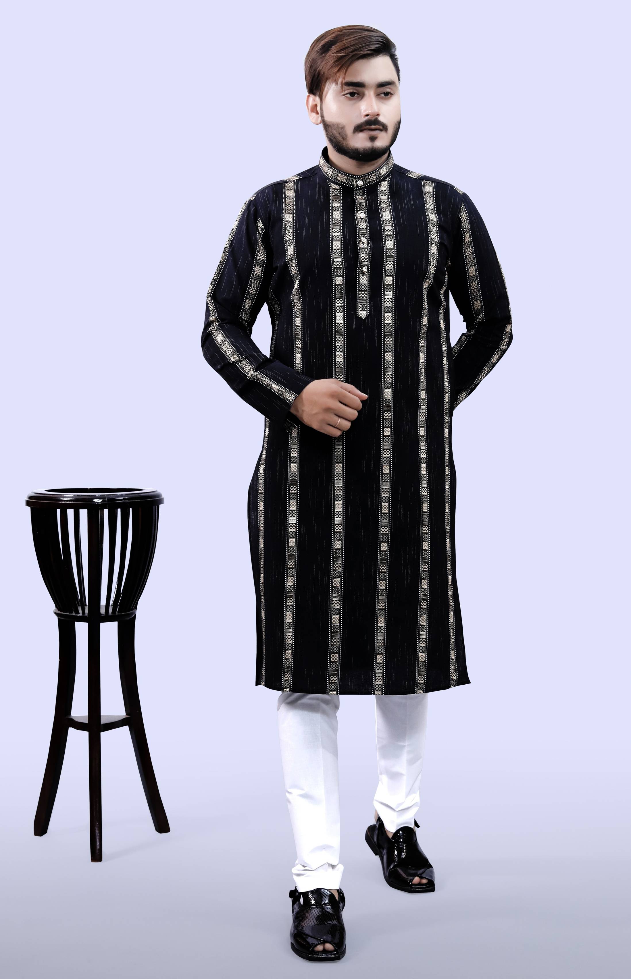 This luxury traditional Indian kurta pajama 2-piece set includes a top (kurta) and a bottom. Loose fitting sleeves and slits along the sides allow for an easy fit and let air circulate freely through the garment. The pant included in this kurta pajama set has a relaxed fit through the seat and legs for absolute comfort. Loose comfortable fitting makes it a great wear.