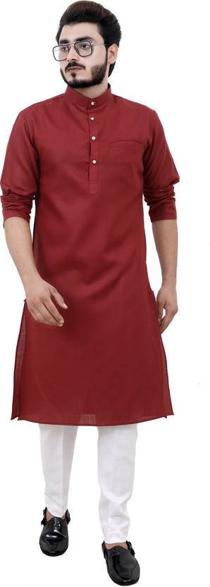 This luxury traditional Indian kurta pajama 2-piece set includes a top (kurta) and a bottom. Loose fitting sleeves and slits along the sides allow for an easy fit and let air circulate freely through the garment. The pant included in this kurta pajama set has a relaxed fit through the seat and legs for absolute comfort. Loose comfortable fitting makes it a great wear.