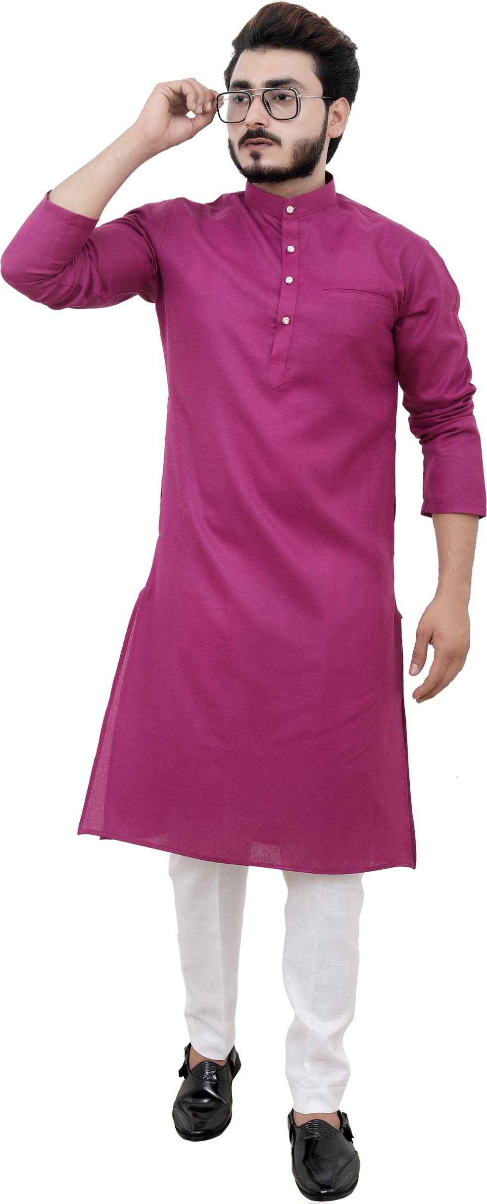 This luxury traditional Indian kurta pajama 2-piece set includes a top (kurta) and a bottom. Loose fitting sleeves and slits along the sides allow for an easy fit and let air circulate freely through the garment. The pant included in this kurta pajama set has a relaxed fit through the seat and legs for absolute comfort. Loose comfortable fitting makes it a great wear.