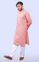 This luxury traditional Indian kurta pajama 2-piece set includes a top (kurta) and a bottom(pajama). Loose fitting sleeves and slits along the sides allow for an easy fit and let air circulate freely through the garment. The pant included in this kurta pajama set has a relaxed fit through the seat and legs for absolute comfort. Loose comfortable fitting makes it a great wear.